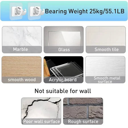 Curtain Rod Holder Self Adhesive Hooks (2 Pcs Set)
